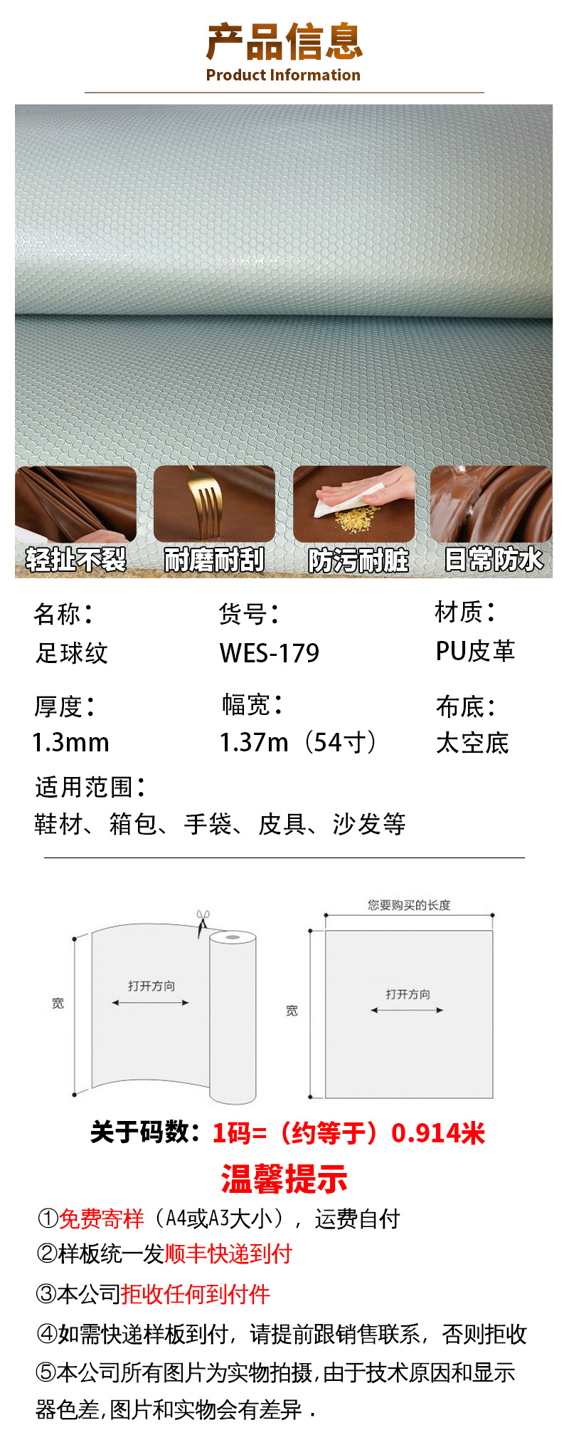 1.3mm足球纹PU皮革